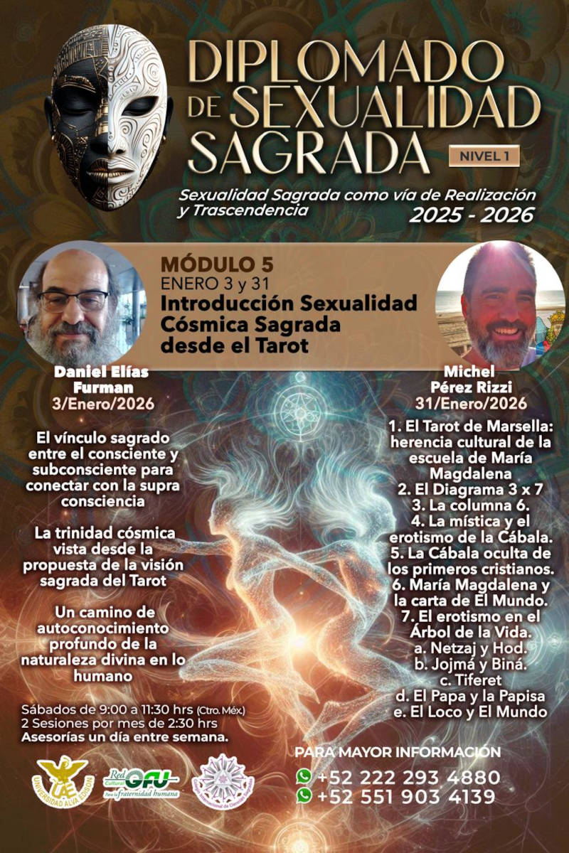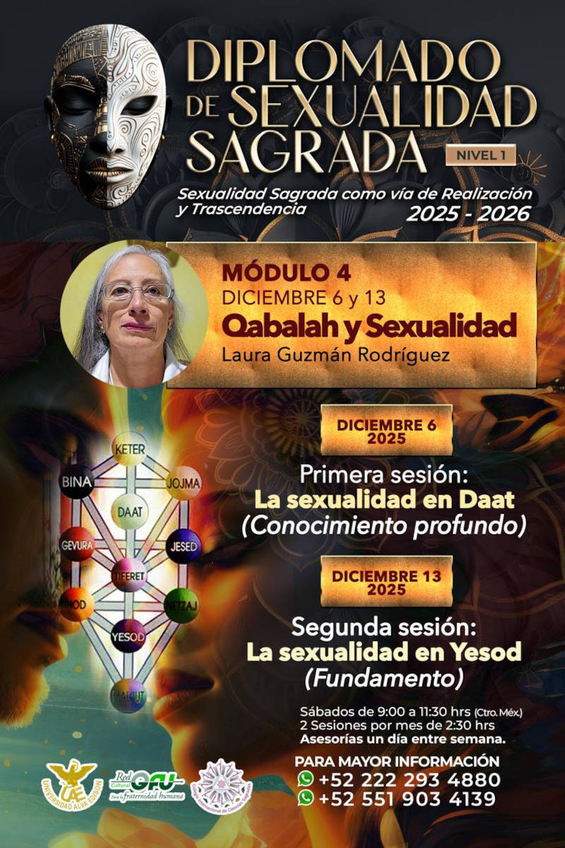 Es recorrido por la tradición cabalística para explorar el papel de la energía sexual como fuerza de creación y transformación. A través del simbolismo del Árbol de la Vida, se abordará cómo cada sefirá refleja dimensiones corporales, emocionales y espirituales, y de qué manera la integración de estas energías conduce a una visión más completa del ser humano. La propuesta invita a comprender la sexualidad como un canal de conciencia que enlaza lo material con lo trascendente, mostrando su potencial para generar equilibrio, creatividad y expansión interior. Un espacio pensado para quienes buscan nuevas perspectivas sobre su energía vital y desean adentrarse en la Qabalah como una guía para la armonía personal y relacional.